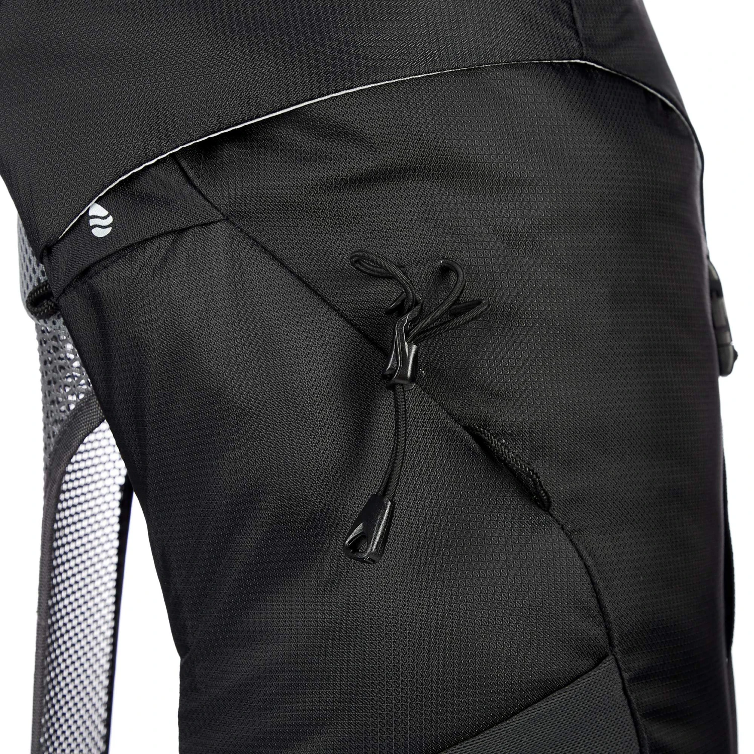 Der Toploader mit Deckel bietet dir, ganz klassisch, den Zugriff von oben auf deine Ausrüstung. Damit du unterwegs die Hände frei hast und dennoch schnell zum Navigieren und Fotografieren an dein Smartphone kommst, hat der AC Lite eine seitliche RV-Netztasche. Diese kannst du problemlos beim Wandern erreichen. Natürlich eignet sie sich auch hervorragend für Snacks.