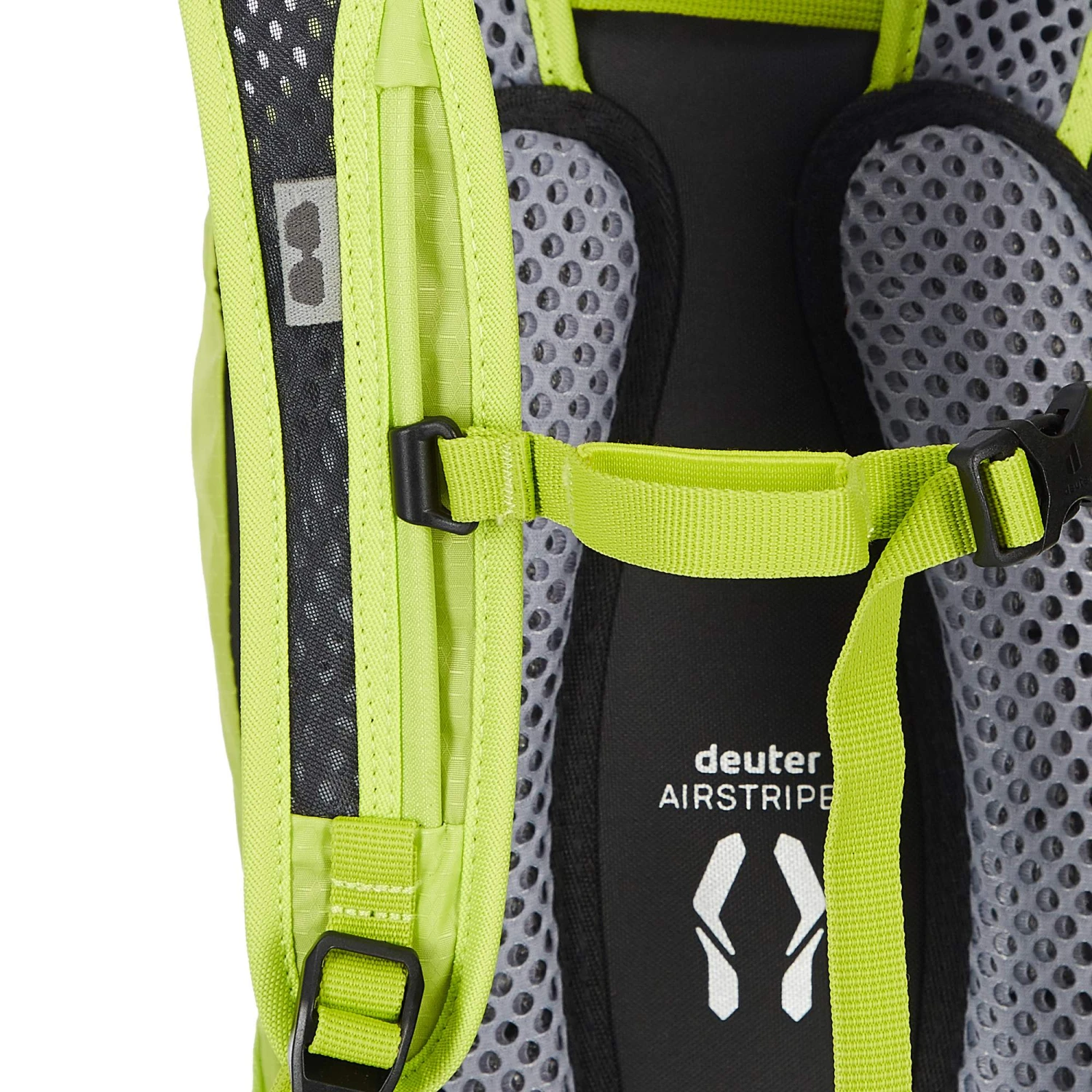 Das Airstripes-System sorgt für eine angenehme Belüftung durch eingebaute Luftkanäle und einen grobporigen Meshbezug. Die schmalen Polster sorgen für den festen und komfortablen Sitz des Deuter Race. So kann der Rucksack auch bei wagemutigen Fahrmanövern nicht ausbrechen. S-förmige Schultergurte ermöglichen dir die hierfür nötige Bewegungsfreiheit.