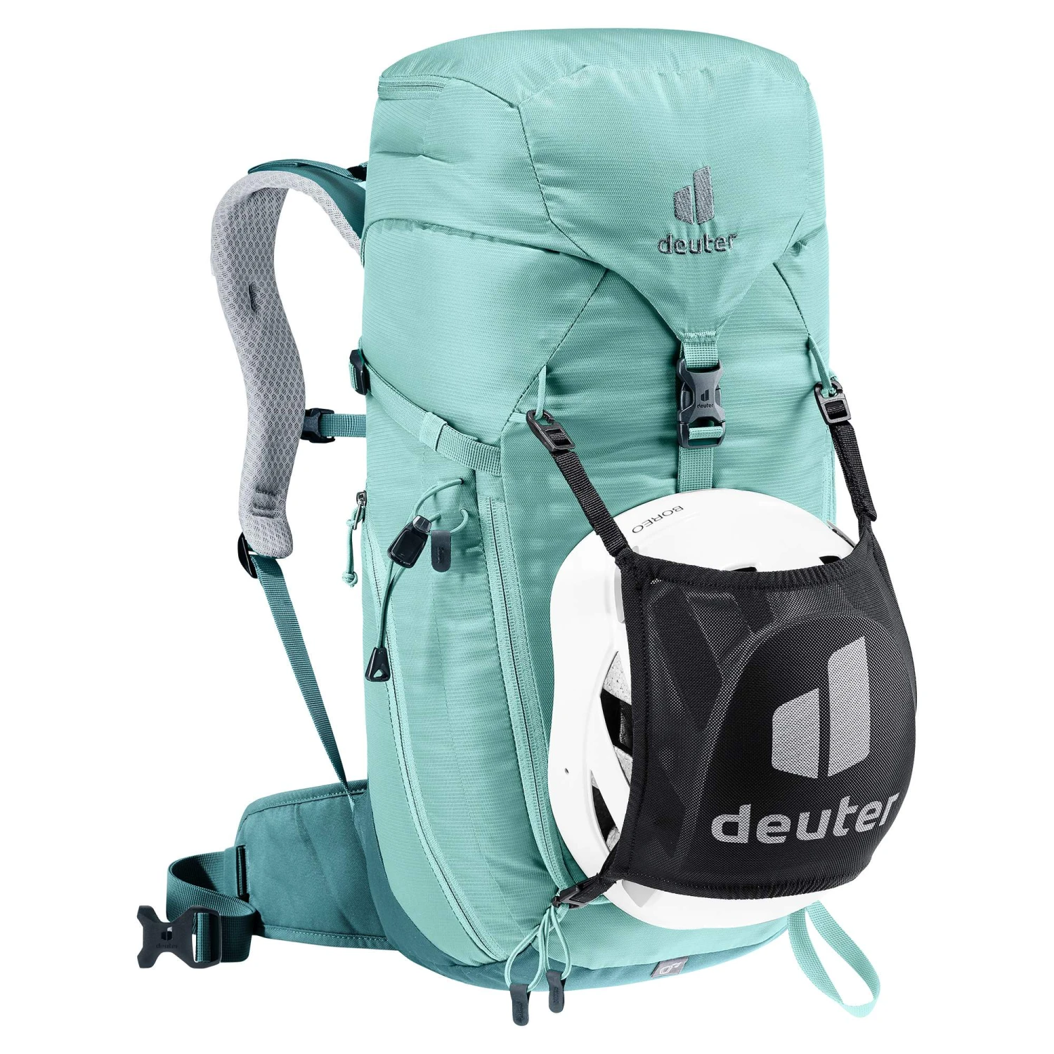 Damit du beim Kraxeln die Hände frei und die Ausrüstung gut sortiert hast, findest du an den Schultergurten je eine große Ausrüstungsschlaufe zum Fixieren deiner Karabiner. Der Deckel ist flach designt, sodass du auch mit aufgesetztem Kletterhelm genügend Kopffreiheit hast. Die Zustiegsstöcke lassen sich schnell in der Stockhalterung auf der Front verstauen.