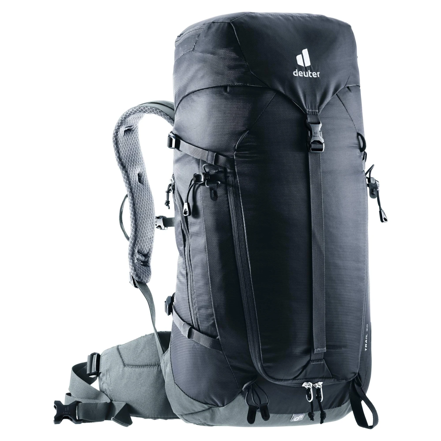 Der Trail 30 ist der größte Rucksack der alpinen Trail-Serie. Er hat einen festen, gepolsterten Hüftgurt mit RV-Fach für eine optimale Lastenübertragung. Das Hauptmaterial des Rucksacks besteht jetzt zu 50% aus recycelten Materialien.