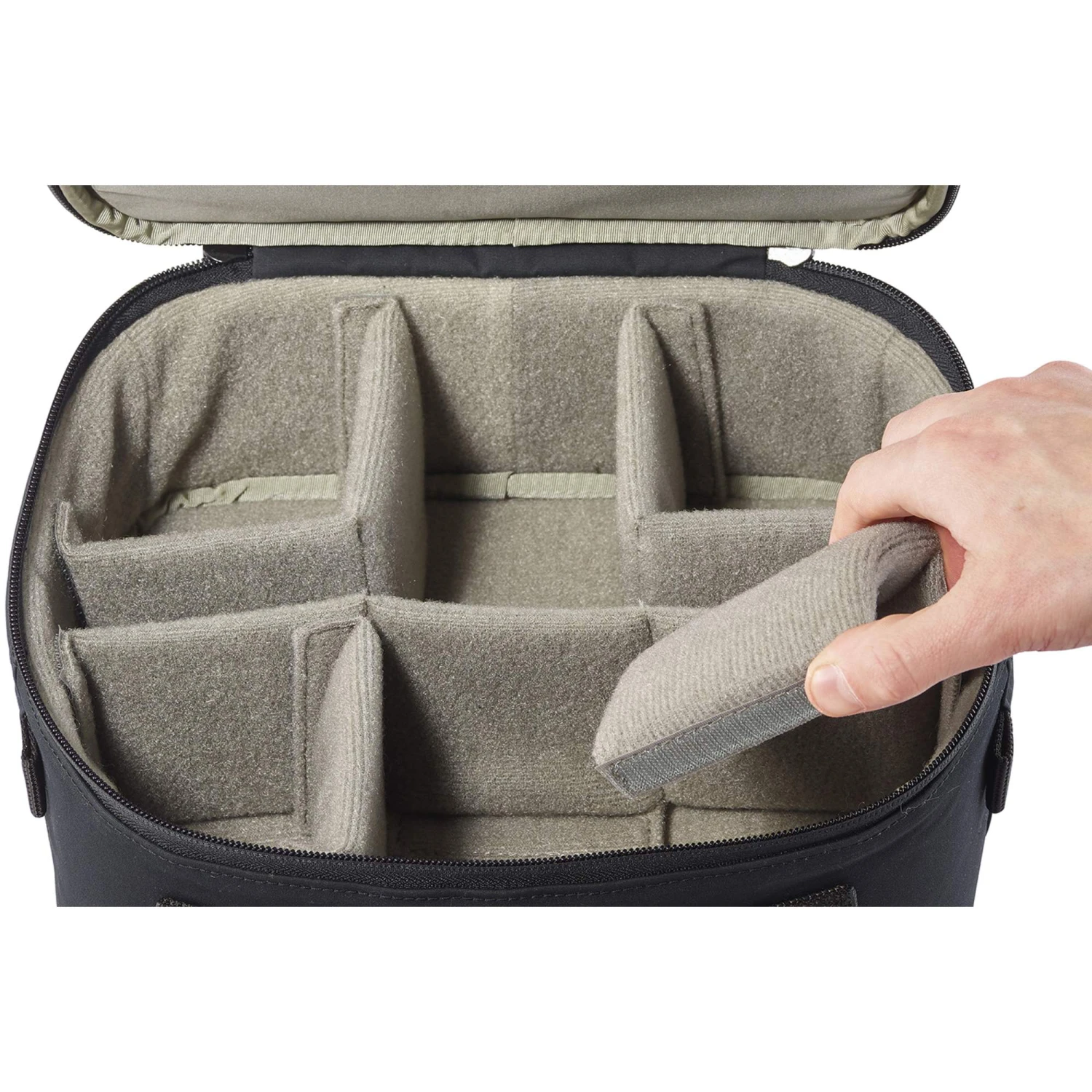 Dank praktischer Trennelemente mit Klettverschluss kannst du die Aufteilung des Kanken Photo Insert Small ganz einfach selbst bestimmen. Die Tasche ist weich ausgepolstert und fasst deine Kamera und zwei kleine Objektive. Für kleinteiliges Zubehör ist Platz in der RV-Tasche im Deckel.
