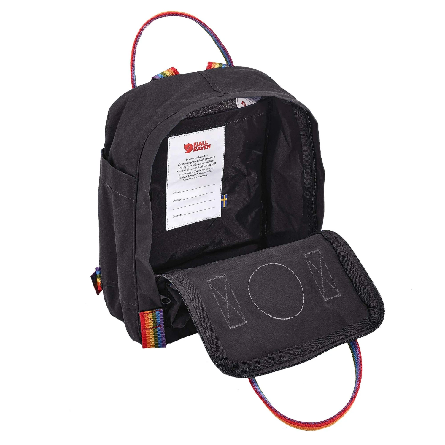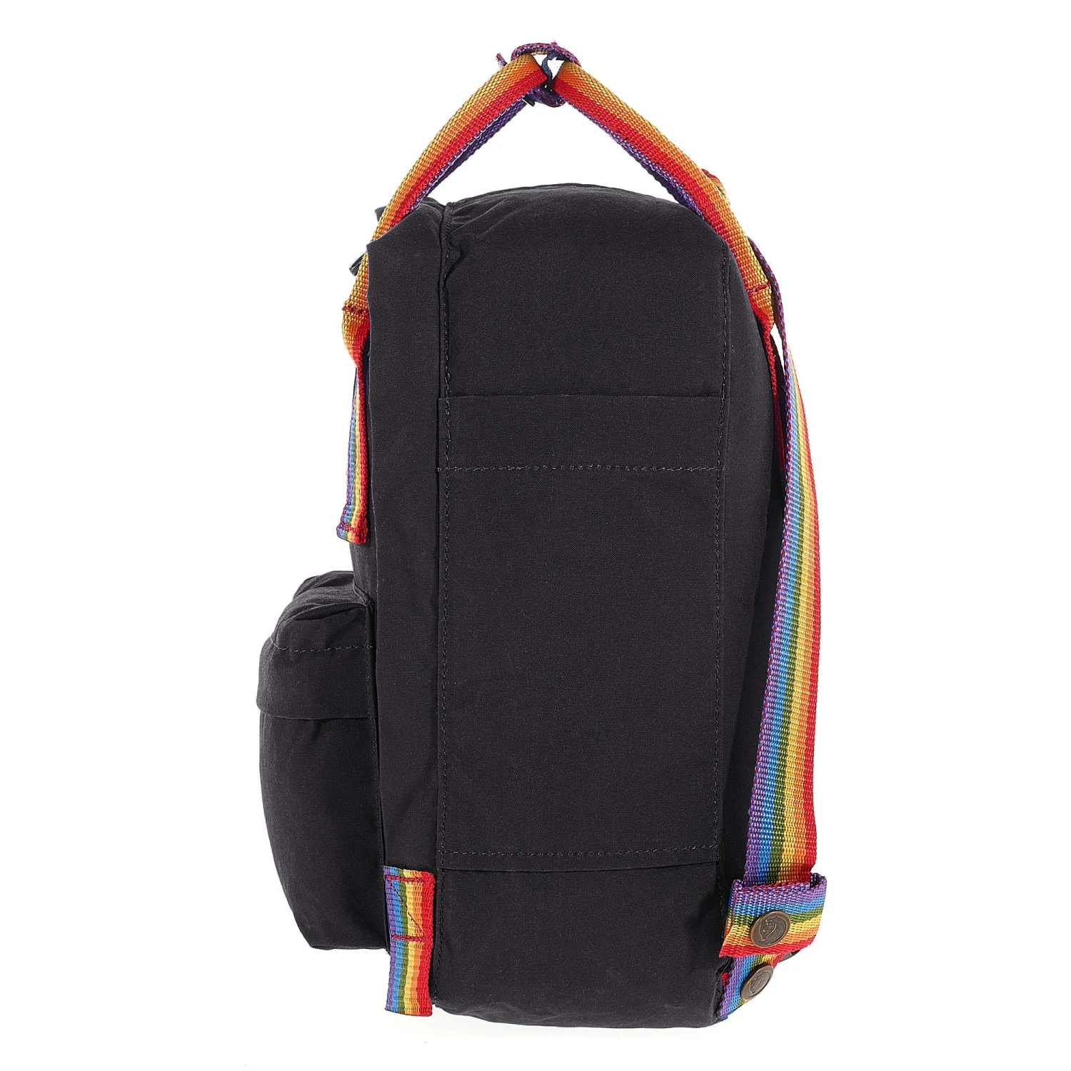 Im Kern ist der Kanken Rainbow Mini dem Original treu geblieben. Er besteht aus dem wasserabweisendem Vinylon F, dessen Wetterschutz ein ganzes Kanken-Leben lang anhält. Auch sonst ist die bunte Ikone ganz wie gewohnt ausgestattet. Bunt, eckig und robust.