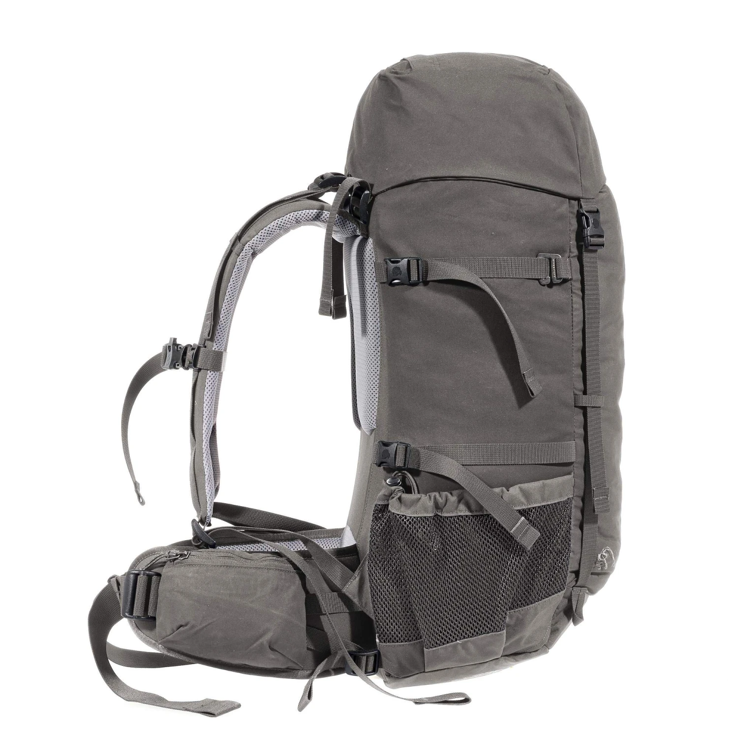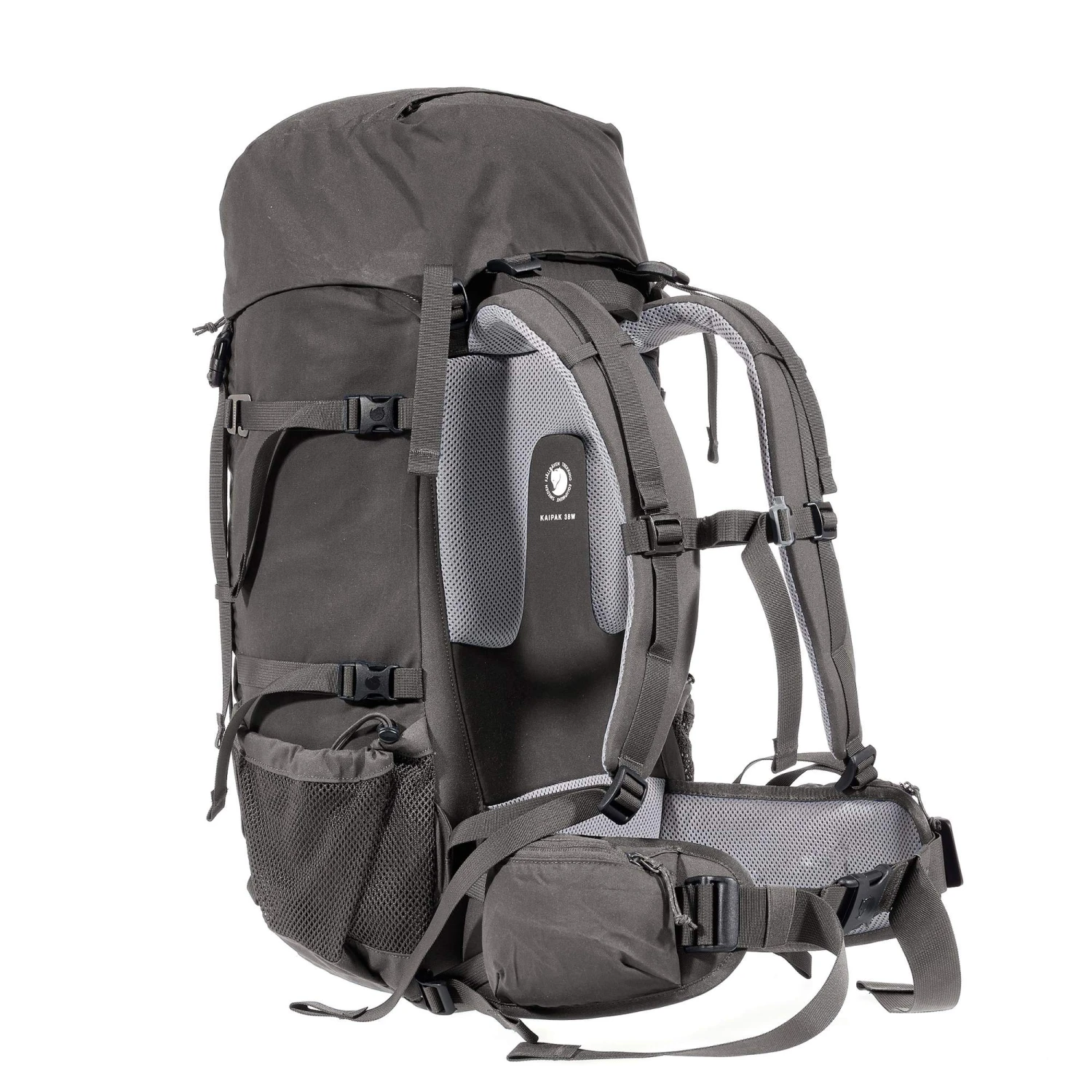 Der robuste Tourenrucksack besteht überwiegend aus dem nachhaltigen G-1000 HeavyDuty Eco. Der stärkste Stoff der G-1000-Serie ist aus recyceltem Polyester und Bio-Baumwolle gearbeitet. Natürlich ist der Kaipak 38 W auch ordentlich gewachst und weist so Schmutz und Nässe ab. Bei Bedarf kannst du ihn ganz einfach mit Grönlandwachs nachimprägnieren (siehe Zubehör). Der Rucksackboden besteht aus doppelt gelegtem, kräftigem Nylon, damit du den Rucksack auch problemlos auf feuchtem Untergrund abstellen kannst.