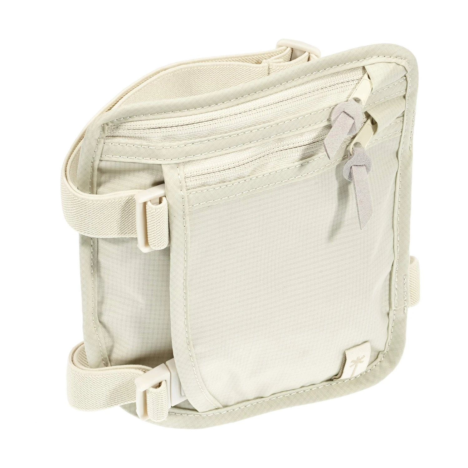 Flache Tasche mit Platz für deine Wertsachen: Die Waikawa trägst du am Ober- oder Unterschenkel unter der Kleidung. Sie ist so gut wie unsichtbar. Das RFID-blockende Material schützt deine Daten.