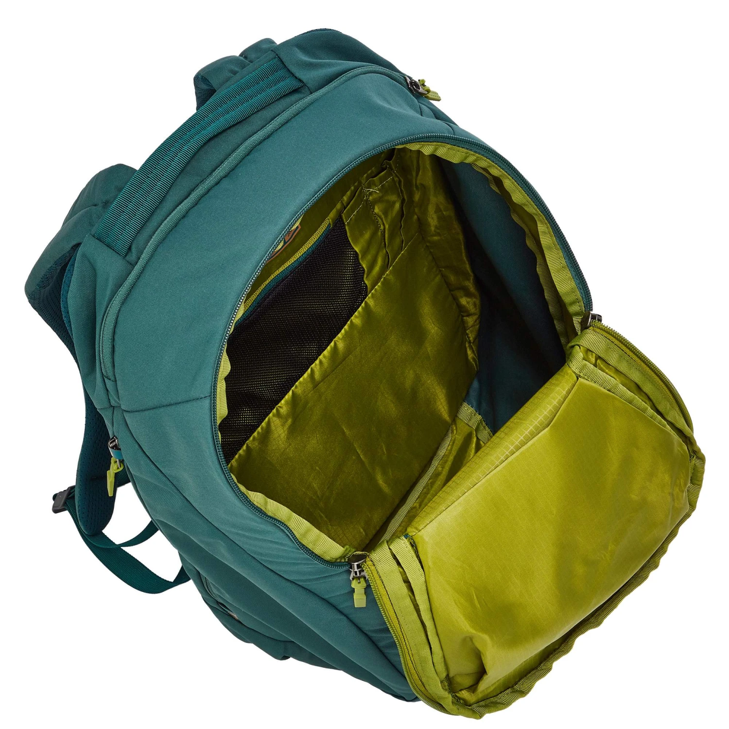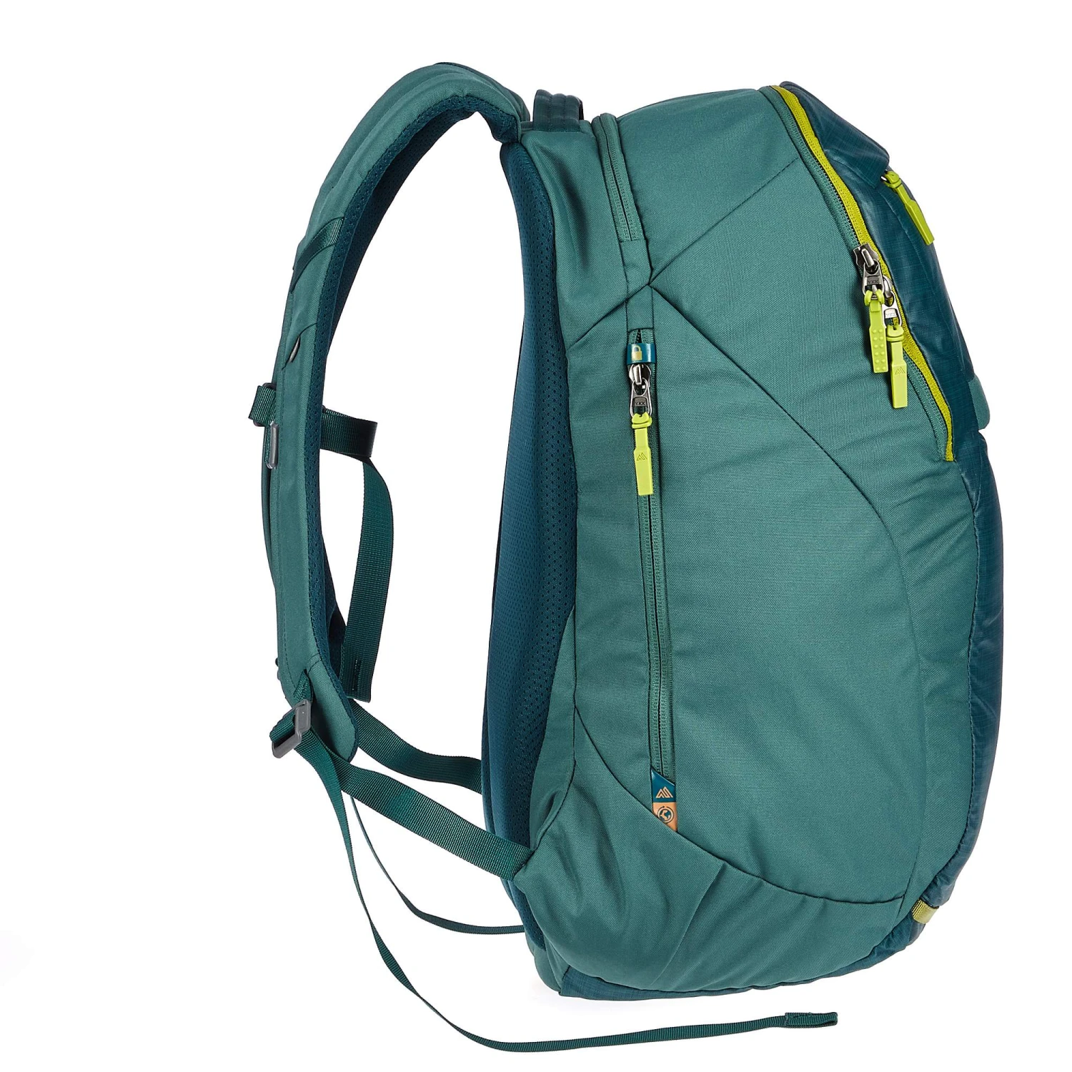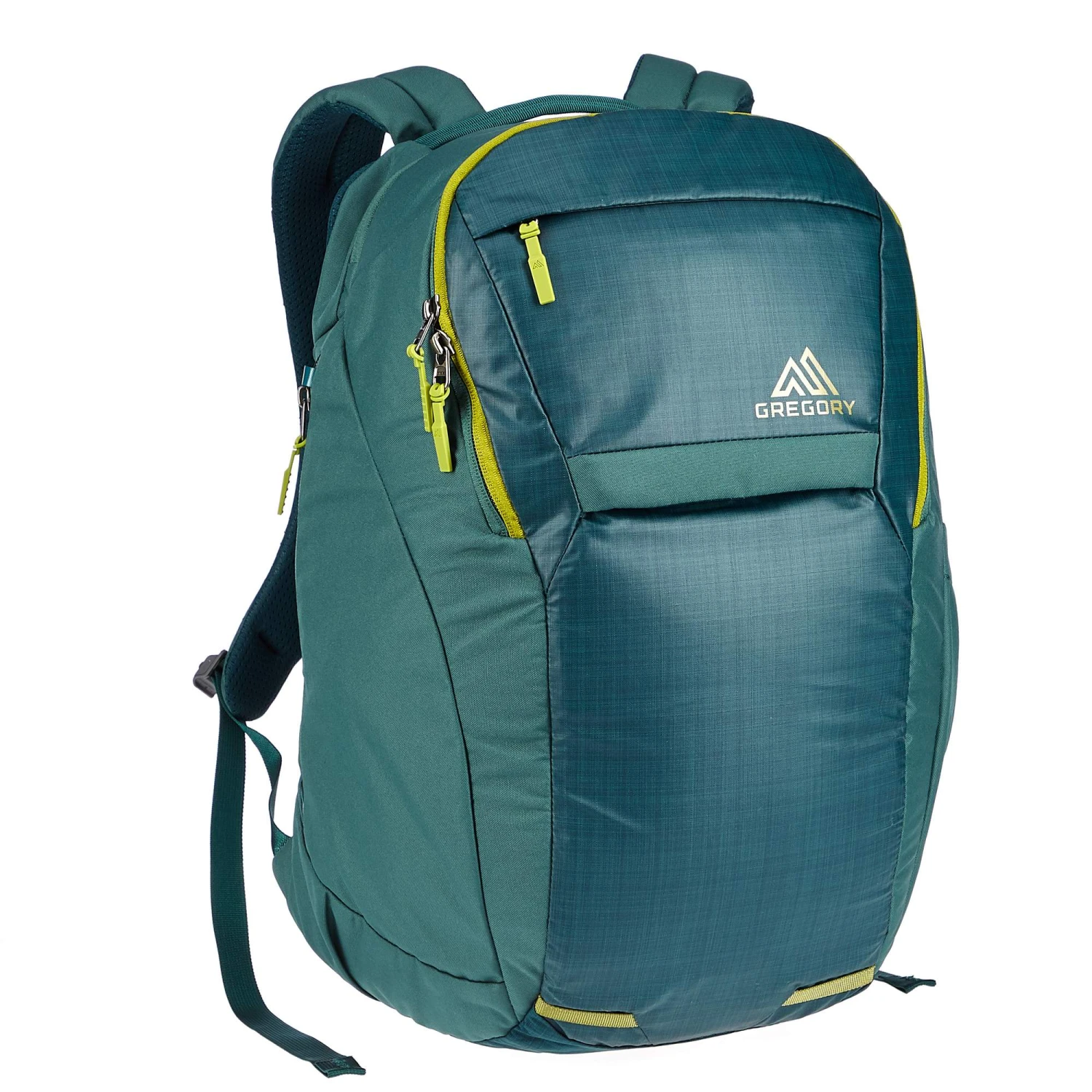 Auf der Front hat Gregory zentral einen Griff eingebaut, der durch seine Platzierung ein ausbalanciertes Tragen des Rucksacks in der Hand ermöglicht. Ideal für die Fahrt mit Bus und Bahn. Das Rückenpolster und die Schultergurte sind angenehm weich gepolstert und feuchtigkeitsleitend.