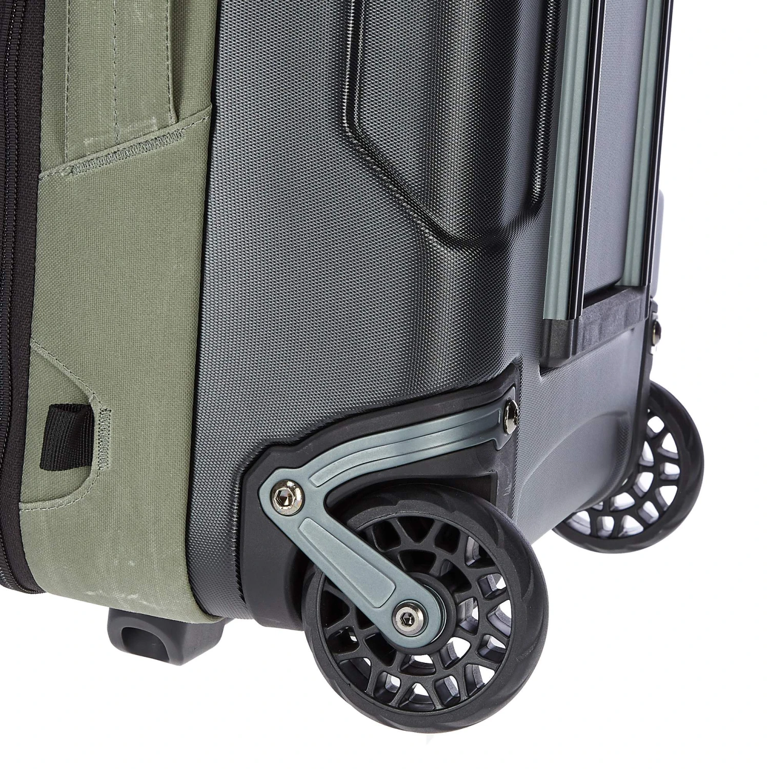 Der Traveltopia Wheeler 40 hat Handgepäckformat und punktet mit umweltfreundlichen Materialien. Die wachsartige Beschichtung kommt ganz ohne PFC aus und das Hauptmaterial ist komplett recycelt.