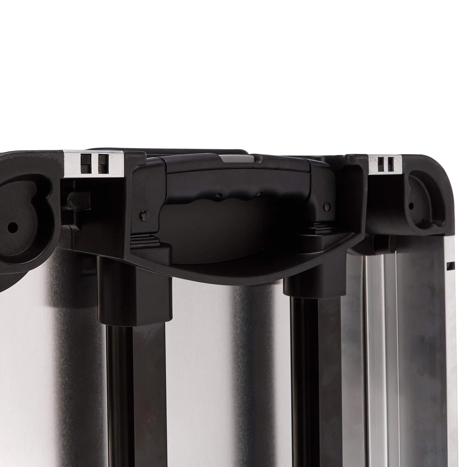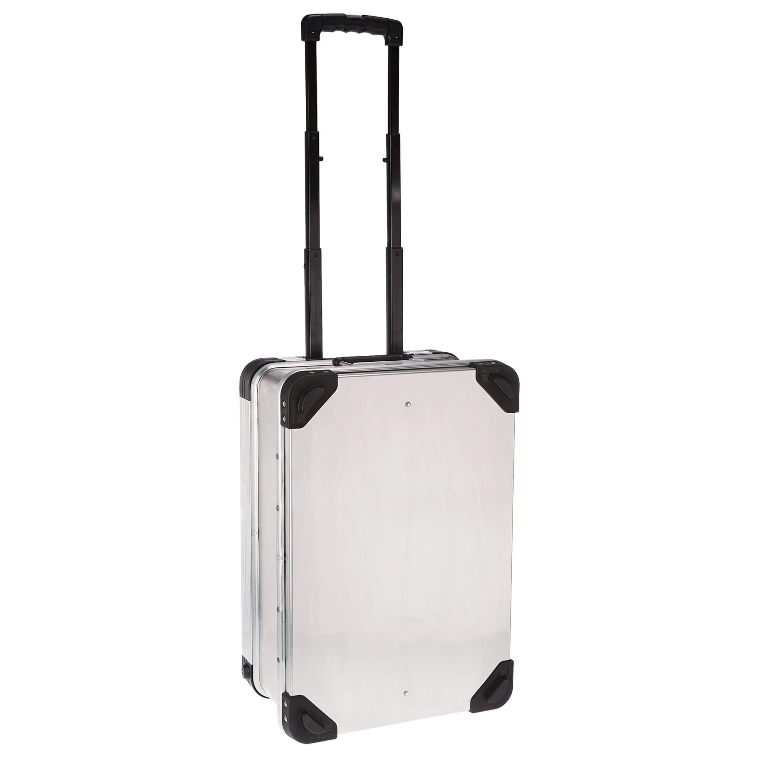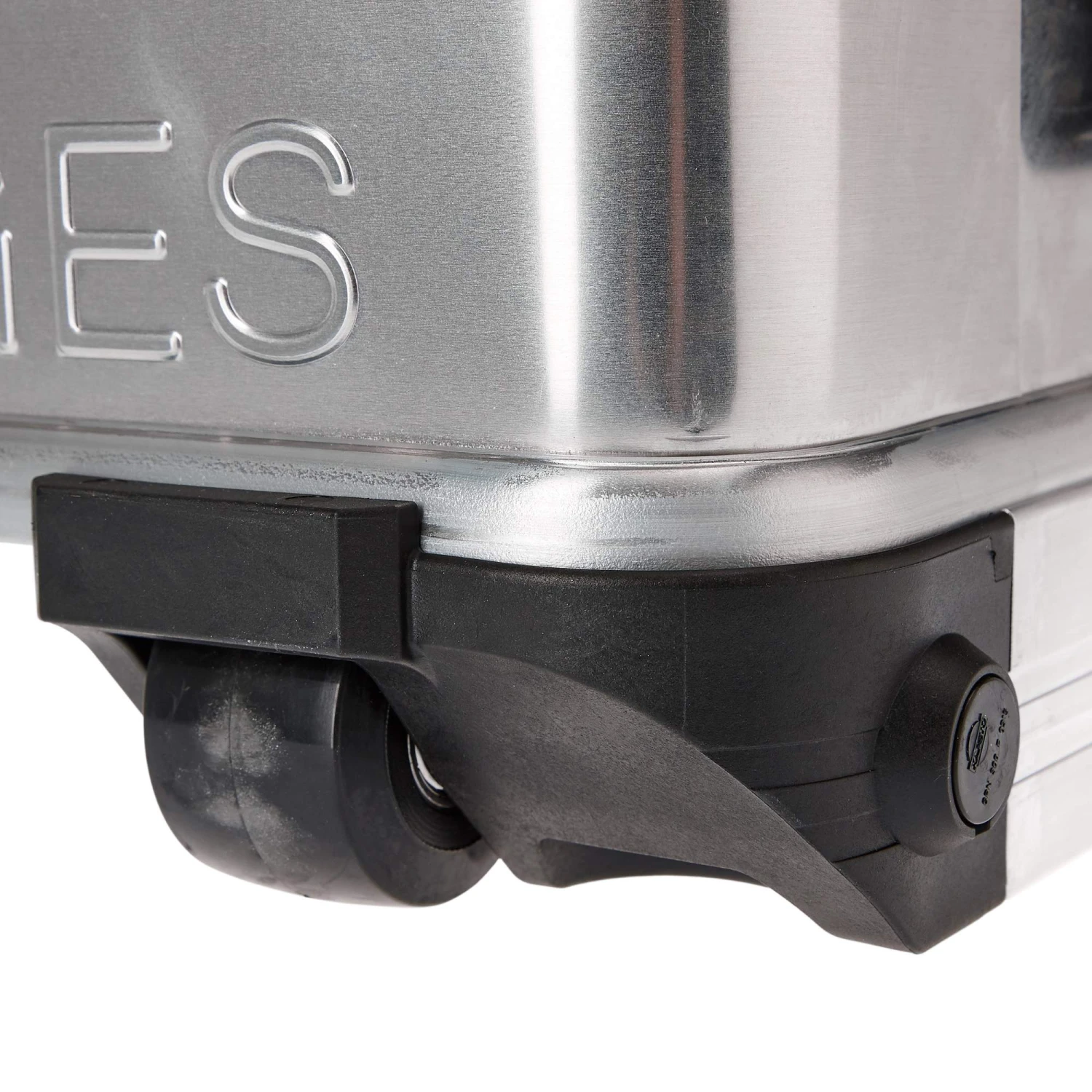 Wenn du eine längere Strecke zurücklegen musst oder der Inhalt schwer ist, zeigt die Alu-Ausrüstungsbox ihre Qualitäten. Dank des herausziehbaren Griffs und der Spezialrollen mit hoher Laufruhe lässt sie sich einfach ziehen. Zum Hochheben oder für kleine Strecken hat die Box seitliche Tragegriffe.