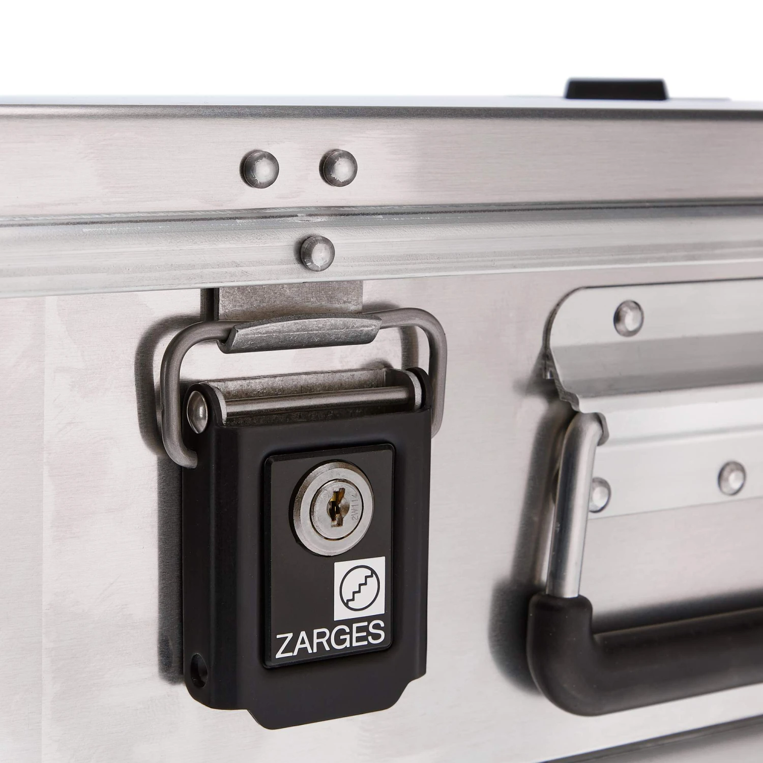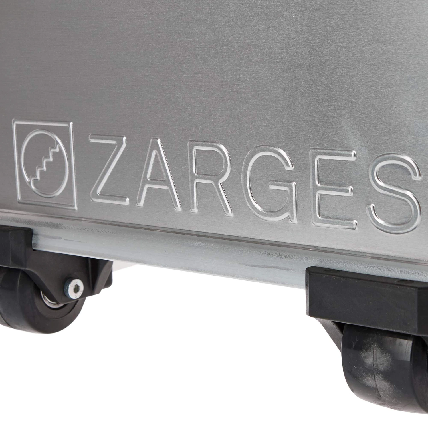 Die Rollen sind integriert, sodass die Alu-Ausrüstungsbox in gewohnter Zarges-Manier stapelbar ist. Die Ecken aus Kunststoff sorgen dafür, dass nichts verrutscht. So kannst du sie gut auf oder im Auto transportieren und auch im Keller lagern.