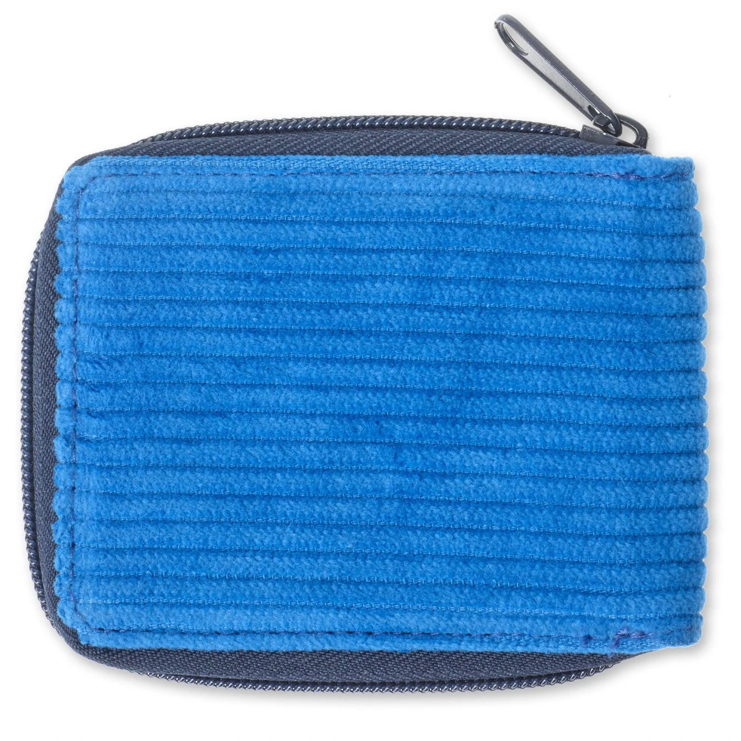Das kleine Portmonee für Reise und Alltag besteht aus robustem, breit gestreiften Baumwollcord. Die Farben sind herrlich leuchtend und auf der Front ist das Kavu-Berglogo aufgenäht.