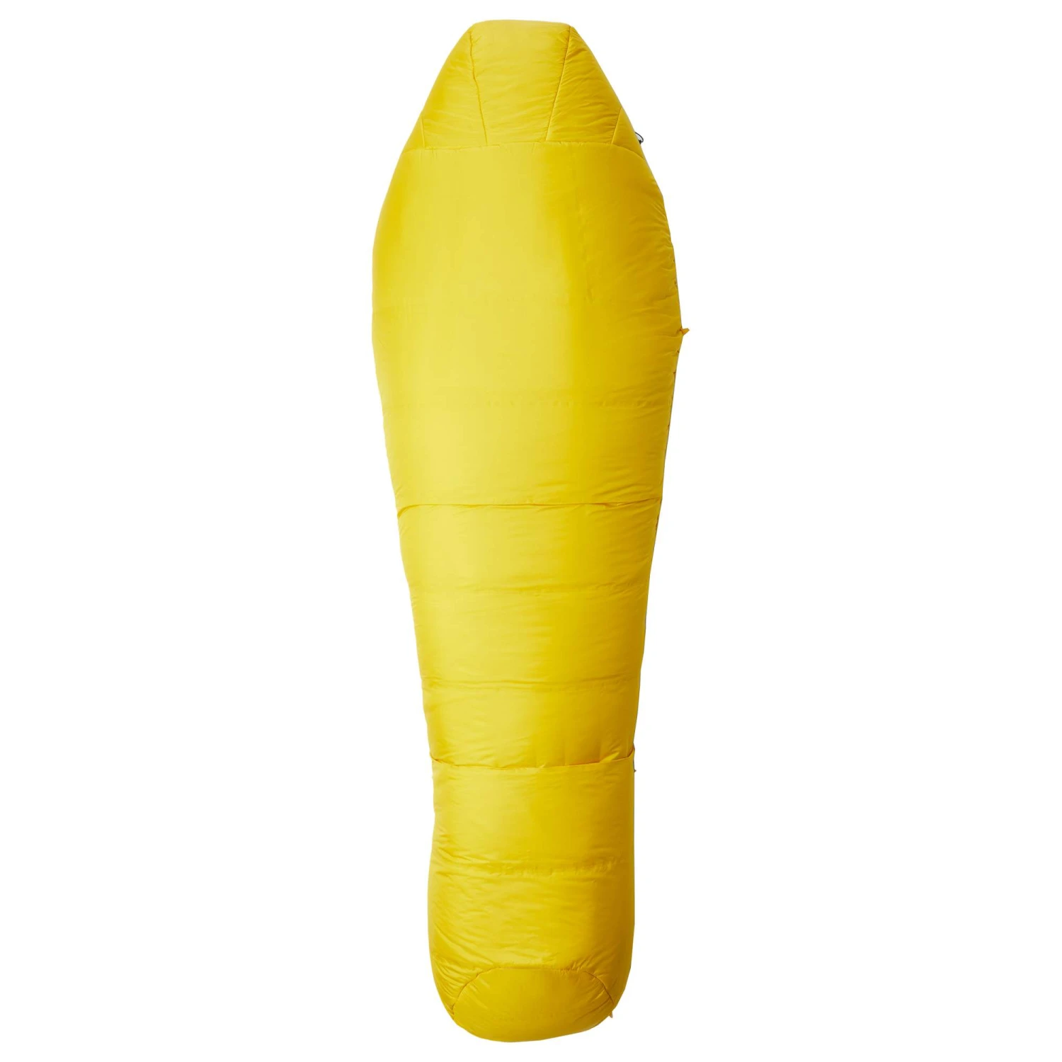 Schlau gedacht – die Oberseite besitzt eine dickere Füllung als die Unterseite. Da die Isolierleistung durch Einschluss von warmer Luft entsteht und die Füllung der Unterseite durch das Körpergewicht zusammengedrückt wird, isoliert diese nur bedingt – warum also unnötiges Gewicht mitschleppen? Die Isolierleistung übernimmt deine Isomatte.