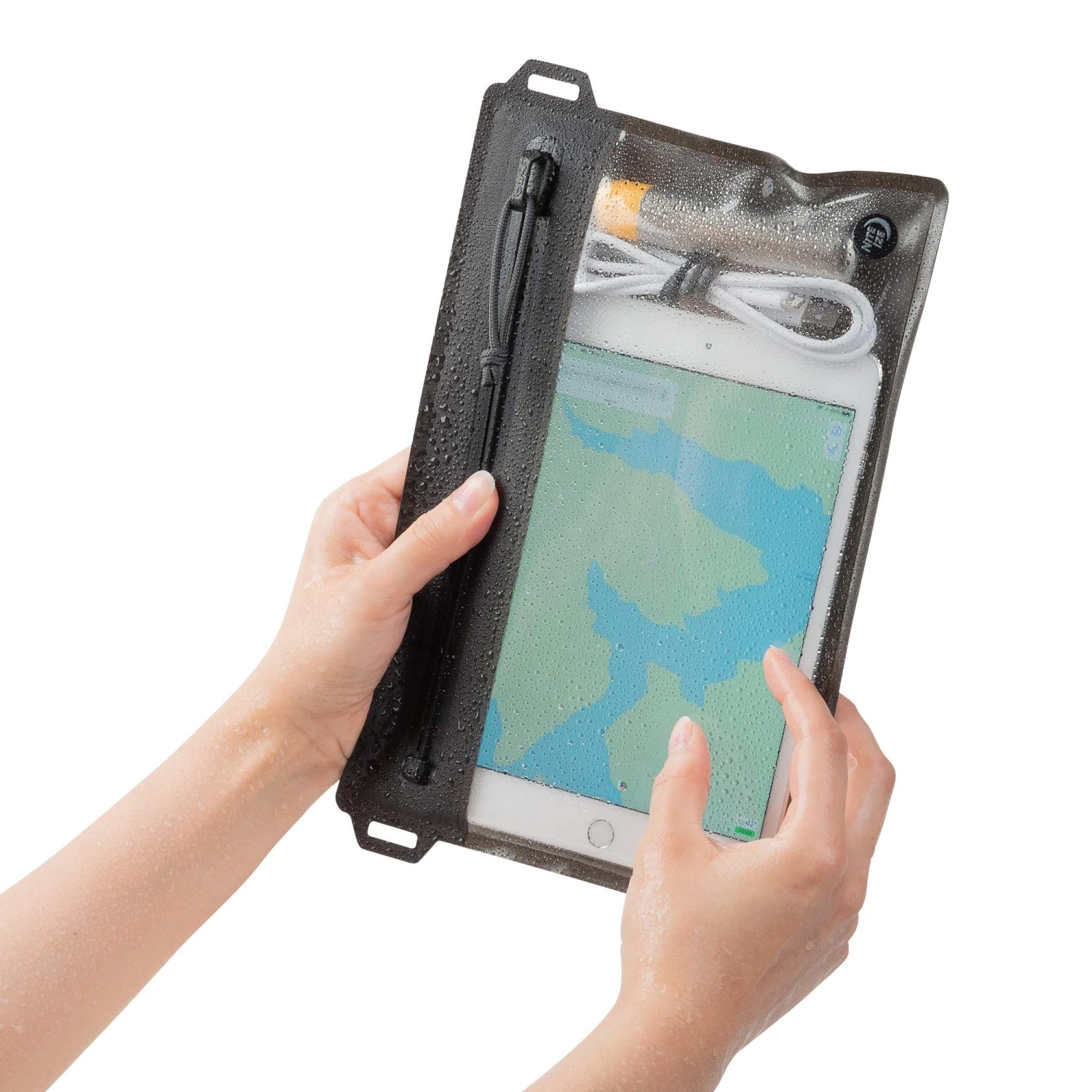 Die Runoff Waterproof Travel Pouch ist wasser- und staubdicht nach IP67. Sie besteht aus robustem TPU mit verschweißten Nähten. Der Tru Zip Waterproof RV dichtet die Tasche in beide Richtungen zuverlässig ab und erlaubt einen unkomplizierten Zugriff. Die Tasche ist auf einer Seite transparent. So weißt du direkt was in ihr steckt. Durch die flache Form nimmt die Runoff Waterproof Travel Pouch kaum Platz weg.