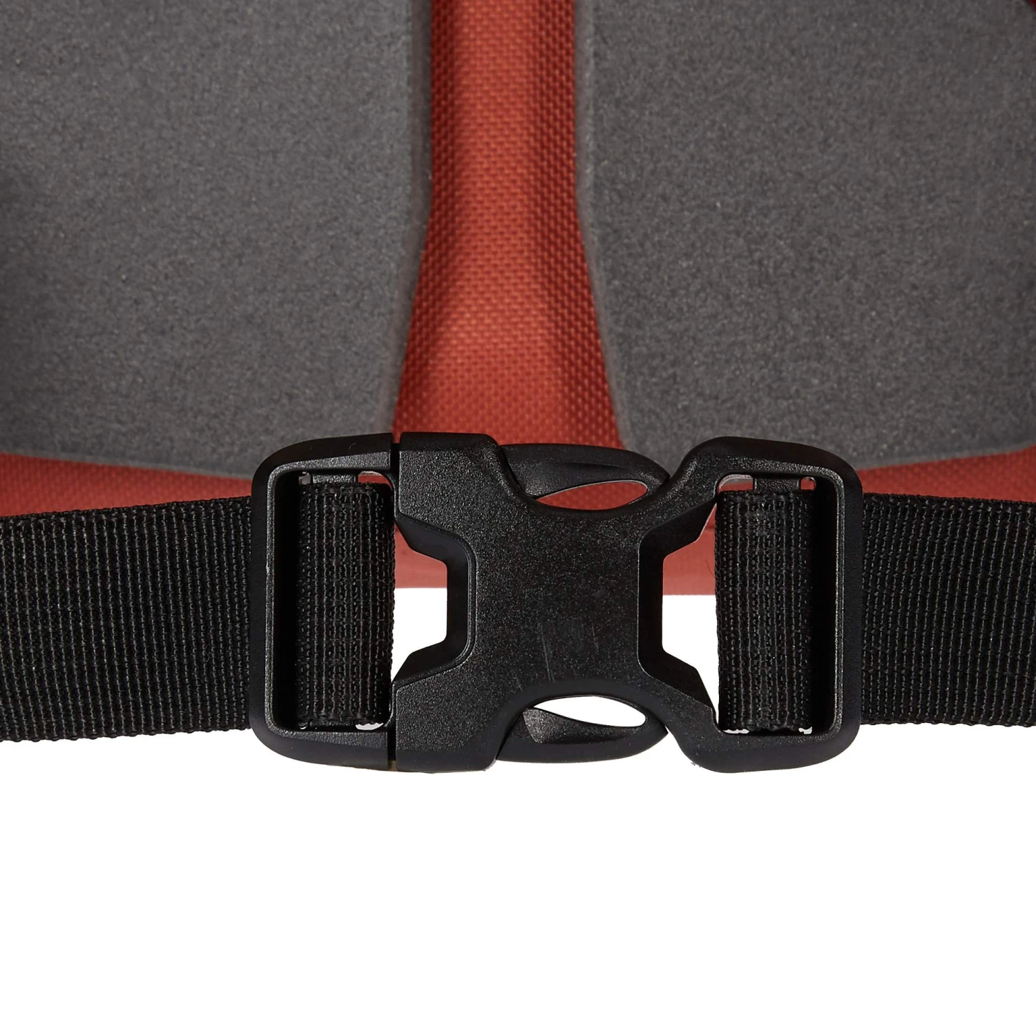 Das gepolsterte Laptopfach ist schwebend angebracht. So stößt der Laptop beim Absetzen des Rucksacks nicht auf dem Boden auf. Zwei Standfüße schützen die Unterkante des Velocity PS 17L und geben ihm Standsicherheit. Der Fahrradrucksack ist wasserdicht, aber wie immer gilt: Um die Wasserdichtigkeit zu gewährleisten, muss der Verschluss 3x gerollt werden!