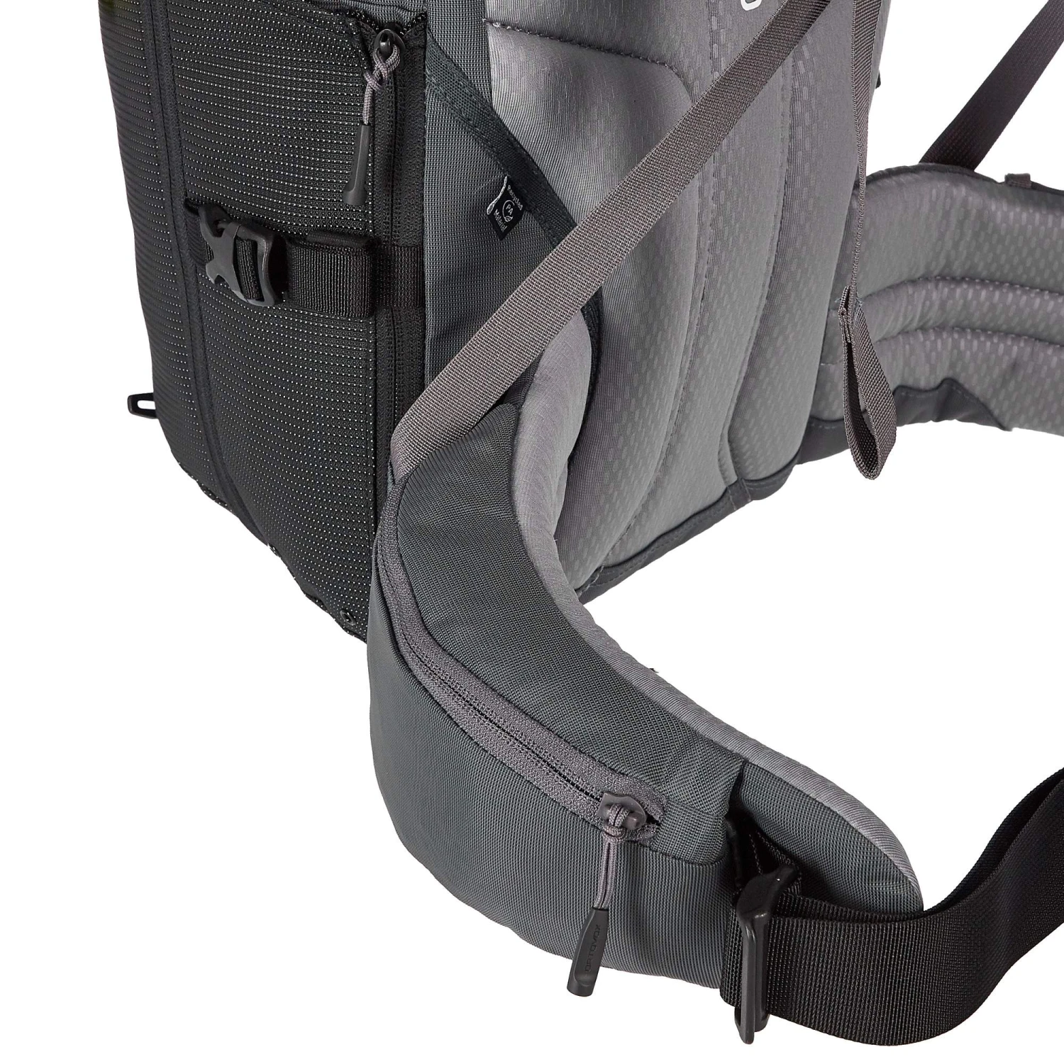 Die Gewichtsverteilung und hohe Stabilität des Tragesystems wird von Metallstreben unterstützt. Die Schultergurte und der Hüftgurt sind angenehm breit und ergonomisch vorgeformt.