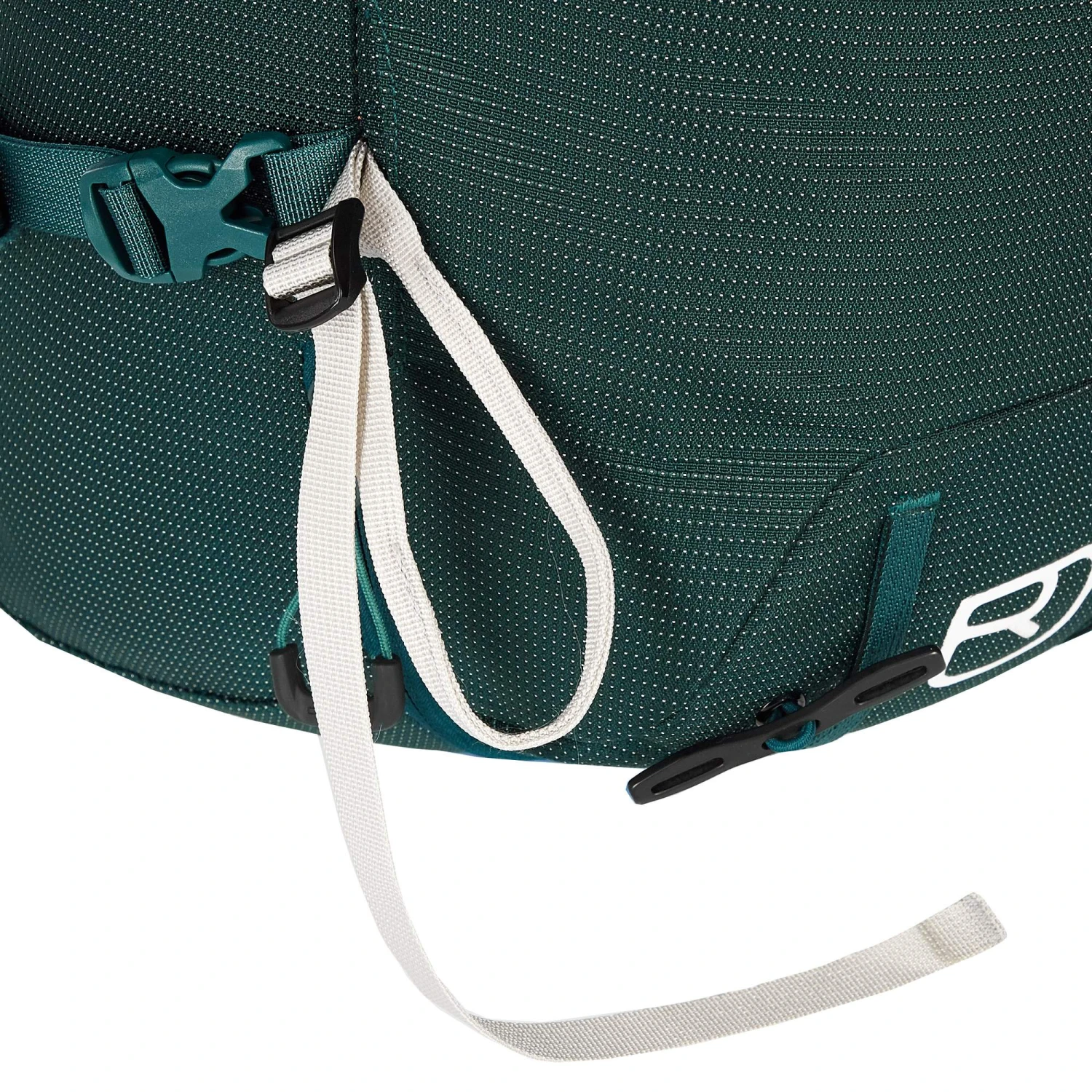 Ortovox hat dem Peak 45 ein neues Tragesystem verpasst, das Swisswool 3D Back System. Dafür wurden Wollvlies, ergonomische Schaumeinsätze und ein 3D-geprägtes Obermaterial clever kombiniert. Das Ergebnis ist ein Kontaktrücken, bei dem du trotz des festen, körpernahen Sitzes ein trockenes Tragegefühl hast. Denn an allen Kontaktpunkten befinden sich Wollpads und Wolle hat den Vorteil, dass sie bis zu 30 Prozent ihres Eigengewichts an Feuchtigkeit aufnehmen kann. Die Wollpads kommen übrigens auch an Schulter- und Hüftgurten zum Einsatz.