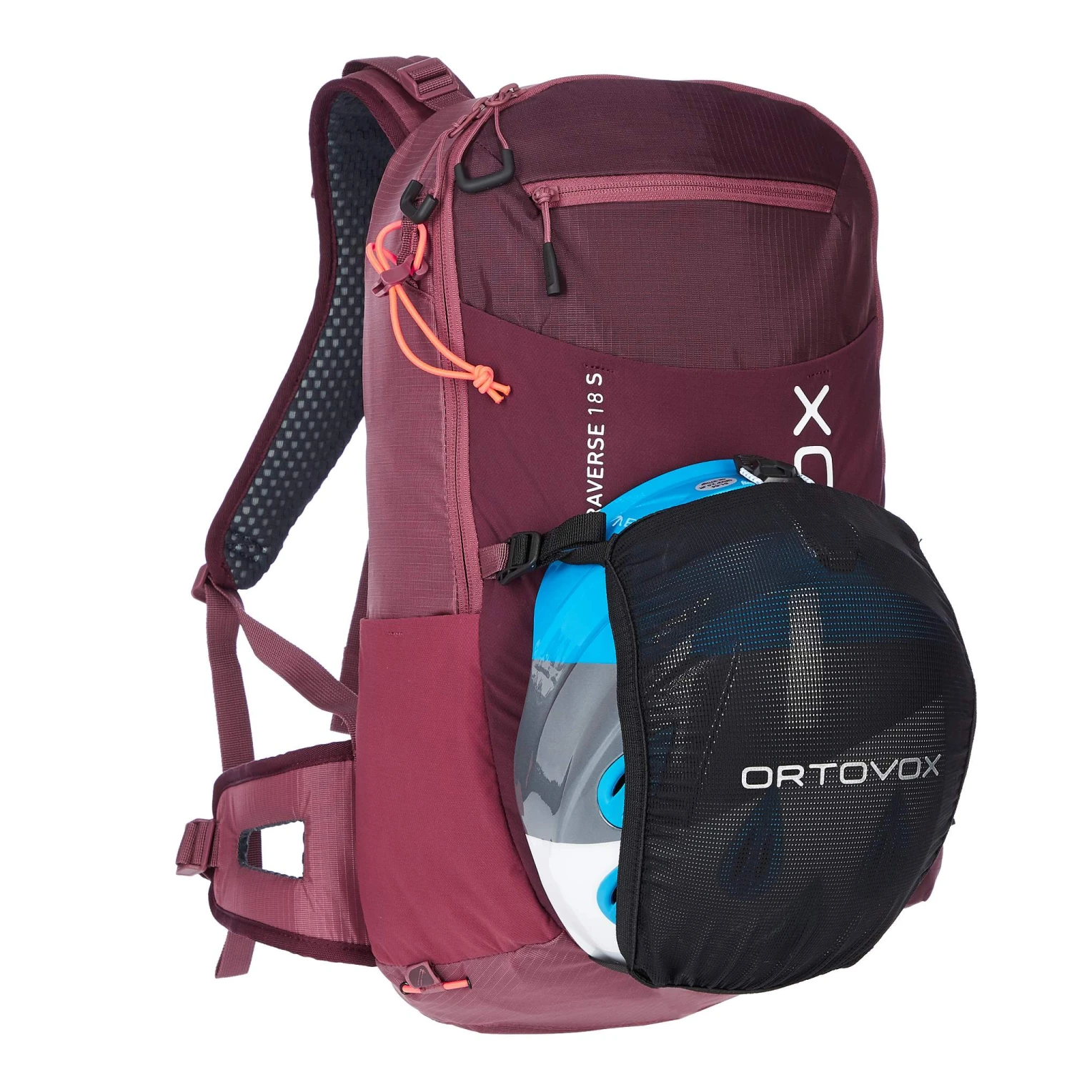 Besonders praktisch sind am neuen Traverse 18 S die verstaubaren Materialschlaufen am Schultergurt. Hier kannst du unterwegs schnell mal deine Handschuhe befestigen oder auch dein GPS-Gerät einhängen. Weiteren, leicht erreichbaren Stauraum bieten die insgesamt 3 elastischen Außentaschen, die Hüfttasche, Stockhalterung und das Helmnetz.