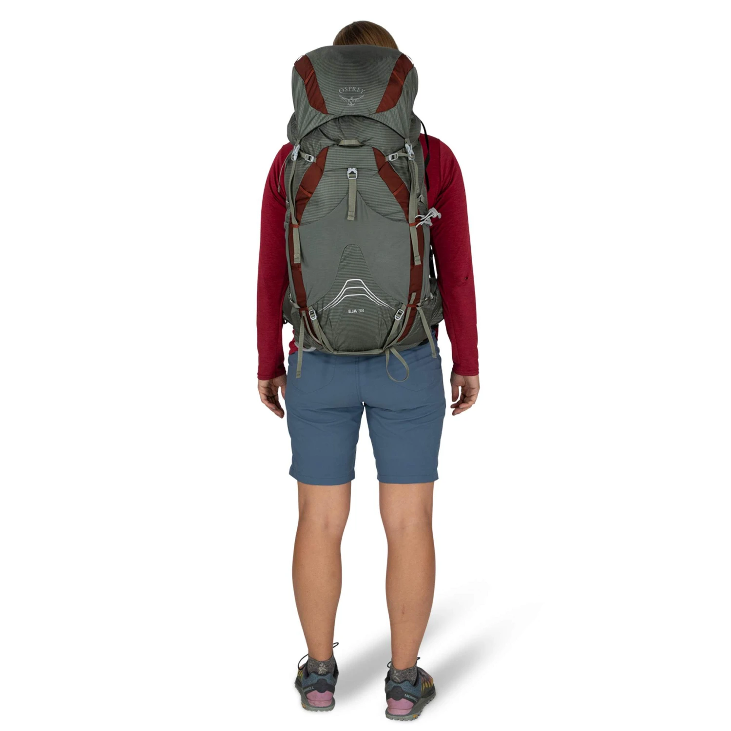 Der Eja ist in zwei verschiedenen Rückenlängen erhältlich. Innerhalb dieser kannst du über das praktische Leitersystem die Höhe der Schultergurte um bis zu 10 cm anpassen. Die Schultergurte und der Hüftgurt sind an die weibliche Körperform angepasst.