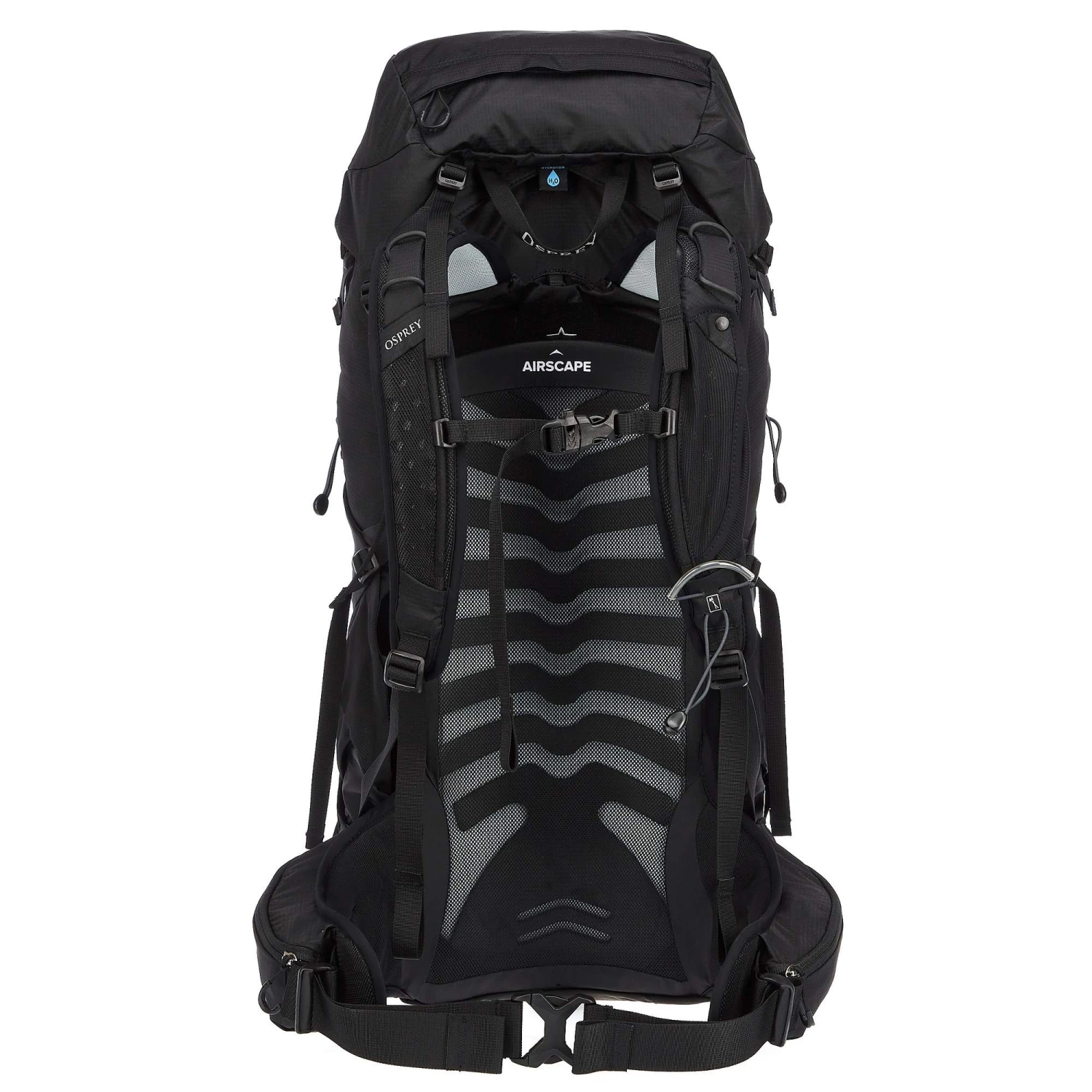 Die Talon/Tempest-Reihe wurde von Osprey mit dem modernen AirScape-Rückensystem ausgestattet. Die feste HDPE-Rückenplatte ist spritzgegossen und bleibt auch bei hoher Traglast verwindungssteif. Dabei passt sich das Material immer noch dem Rücken an. Der Meshbezug sorgt für eine sehr gute Belüftung des Rückens.