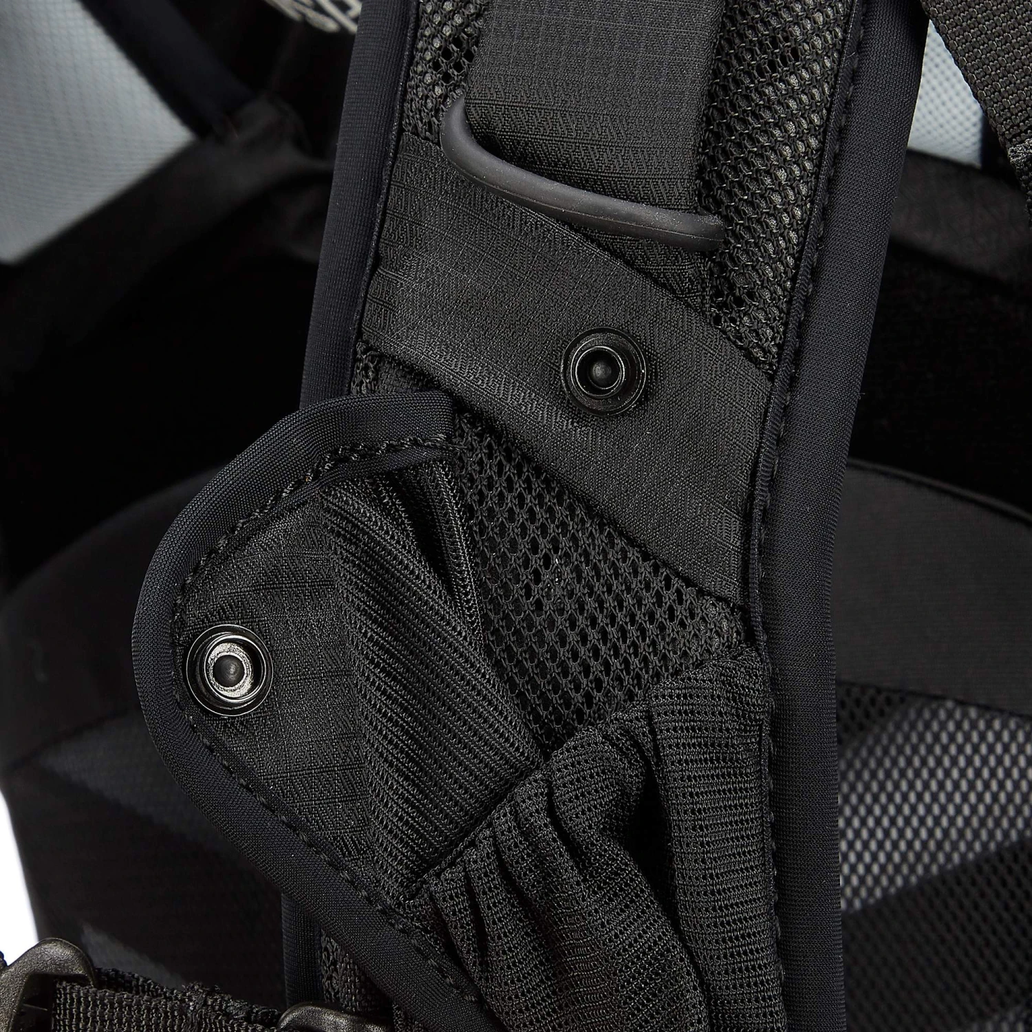 - Netzfach mit Druckknopf auf dem linken Schultergurt