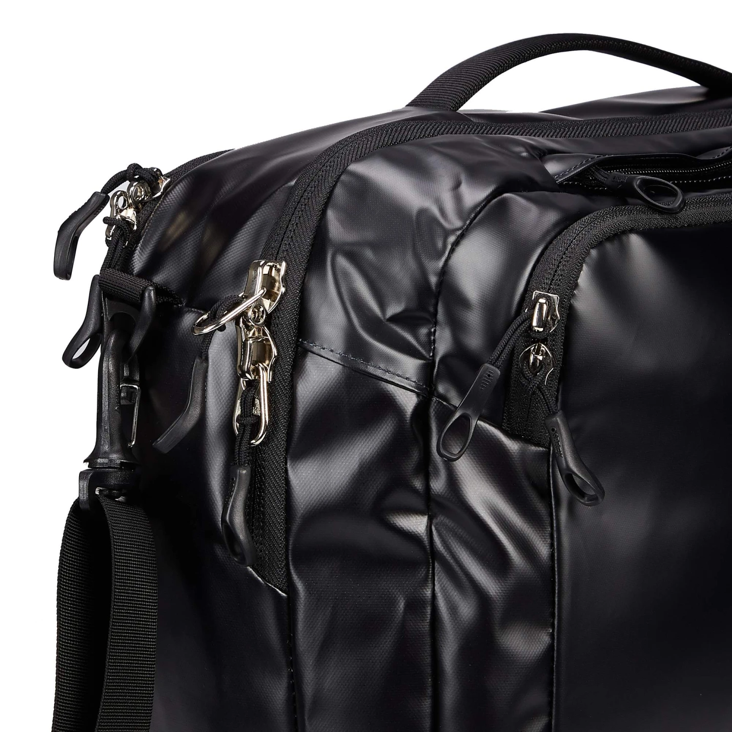 Wie die robusten Transporter-Duffles besteht auch diese sportliche Reisetasche aus einem TPU-beschichteten, recycelten Außenmaterial, das unempfindlich gegenüber Schmutz und Wasser ist und sich somit besonders leicht reinigen lässt.