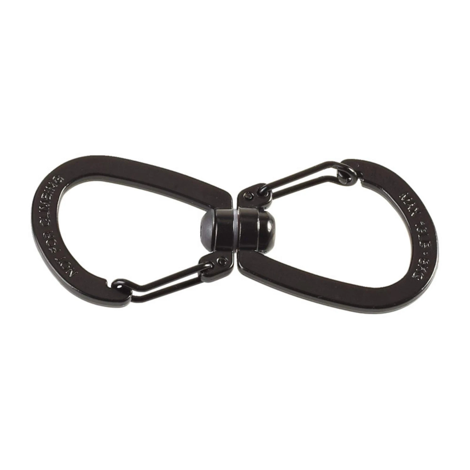 360° drehbarer Doppelkarabiner. Perfekt z.B. um die Trinkflasche am Rucksack zu sichern.