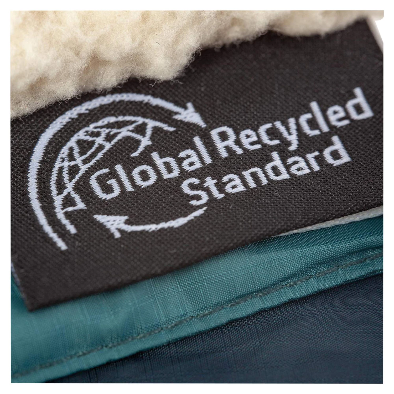 Super flauschige Decke mit wasserabweisender Außenseite und Teddyfleece auf der Innenseite. Kann durch seitliche Druckknöpfe zum Schlafsack verwandelt werden. Hergestellt aus recycelten PET-Flaschen.